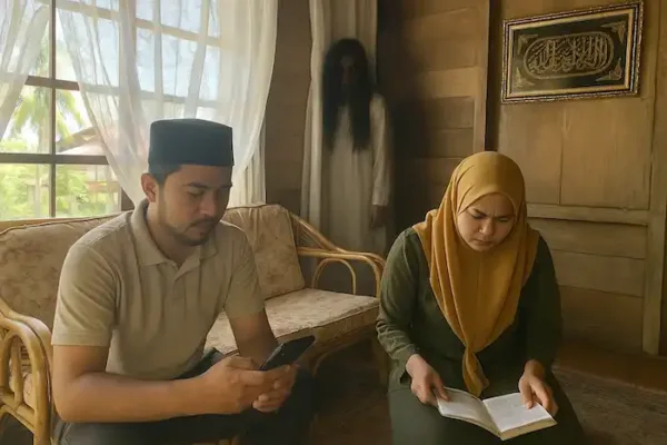 – Ada gangguan pelik di rumah ( bunyi ketuk, tapak kaki)